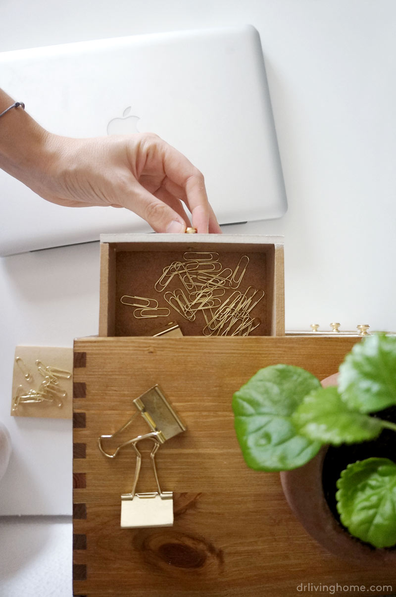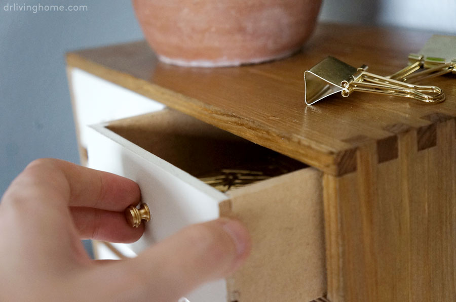 Espacio de almacenaje. En una oficina en casa o en cualquier parte, se acumulan papeles, bolis, clips, notas, marcadores, etc. etc. Para tenerlo todo bien organizado necesitas tener espacio de almacenaje. En mi caso coloqué una pequeña cajonera que transformé para adaptarla al estilo que buscaba. ¿Te gustaría ver el antes y después?