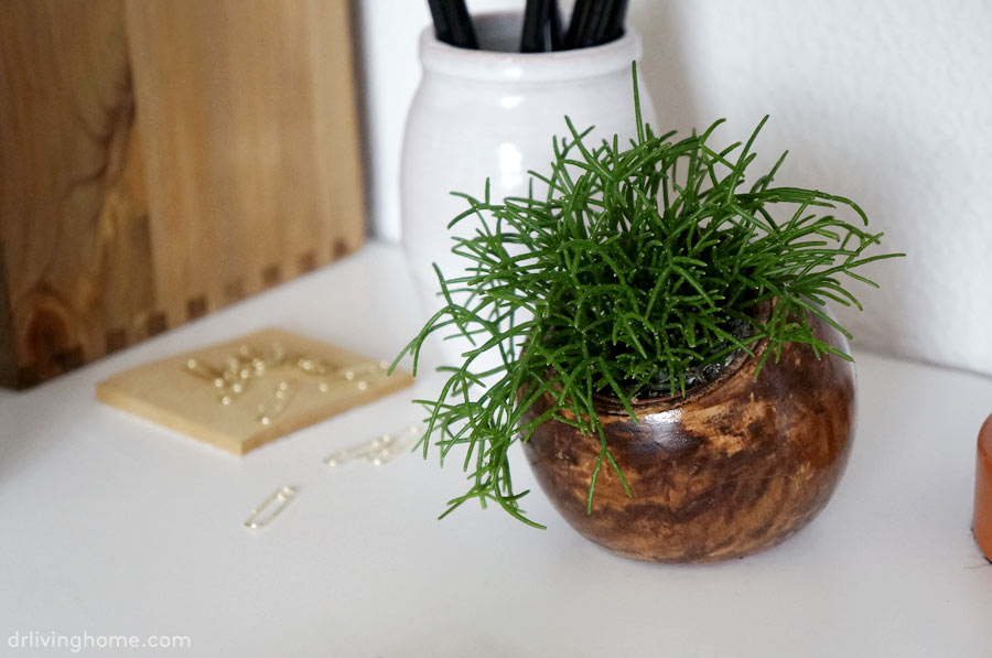 Mi toque personal, supongo que no te sorprenderá demasiado, además del estilo de la oficina en sí mismo, son las plantas. Poner un par de plantitas sobre el escritorio me llena de alegría.