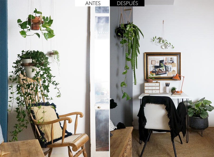 El antes consistía en que no había oficina, básicamente. En ese rincón tenía una mecedora que había encontrado Mick en la calle. Nos dio mucha pena tener que quitarla pero no había forma de encajar las dos cosas. Ahora la mecedora está en casa de mis padres.