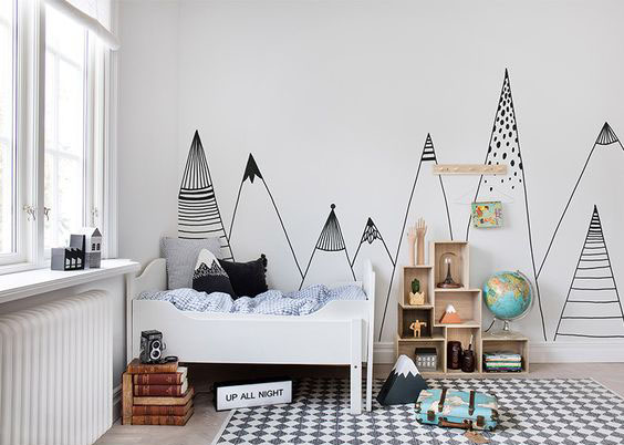 Los vinilos decorativos me gustan especialmente en habitaciones infantiles. Hay diseños muy bonitos y divertidos y además puedes escoger casi cualquier temática: naturaleza, super héroes, dibujos geométricos… y adaptarlo a los gustos del enano o enana que duerma en la habitación.